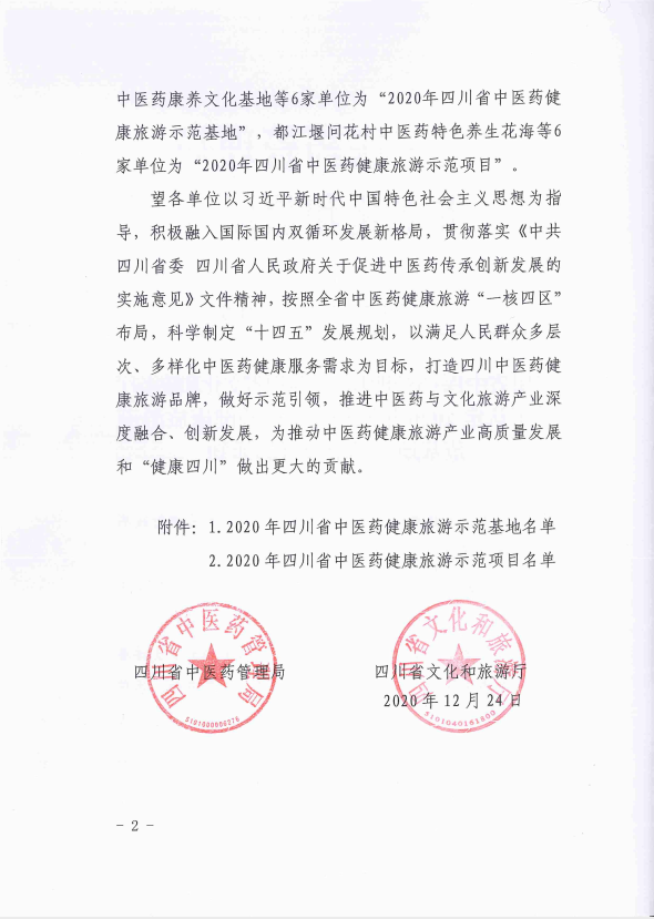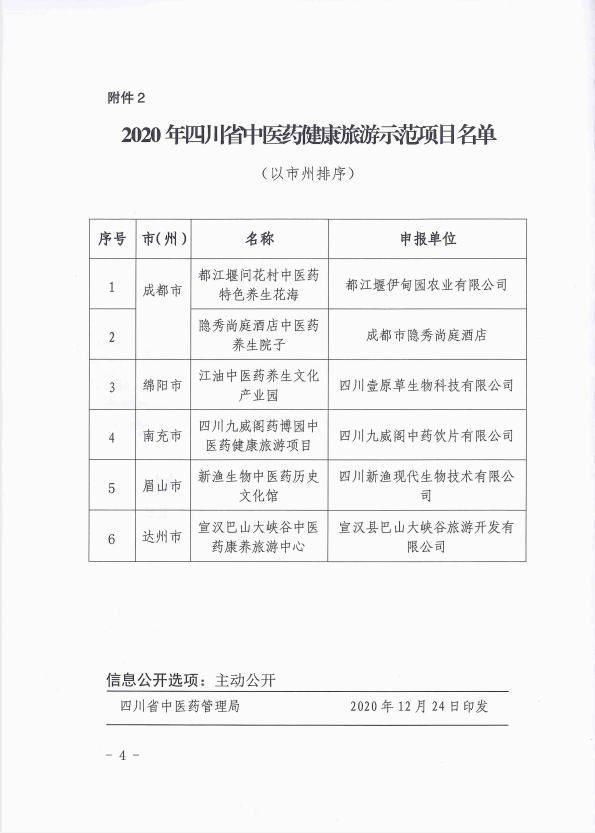01月04 熱烈慶祝新漁生物中醫(yī)藥歷史文化館被認(rèn)定為2020年四川省中醫(yī)藥健康旅游示范項目 發(fā)布于 09:44 企業(yè)新聞 作者: 新漁生物 0 條評論 0 贊 近日,新漁生物中醫(yī)藥歷史文化館被四川省中醫(yī)藥管理局,四川省文化和旅游廳認(rèn)定為2020年四川省中醫(yī)藥健康旅游示范項目。