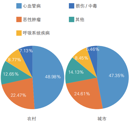 但由于我國居民不健康生活方式流行,有心血管病危險因素的人群巨大,加之人口老齡化加速,心血管病仍是我國居民健康的最大威脅之一。在我國城鄉(xiāng)居民疾病死亡構(gòu)成比中,心血管病占首位,2021年分別占農(nóng)村、城市死因的48.98%和47.35%;每5例死亡中就有2例死于心血管病。